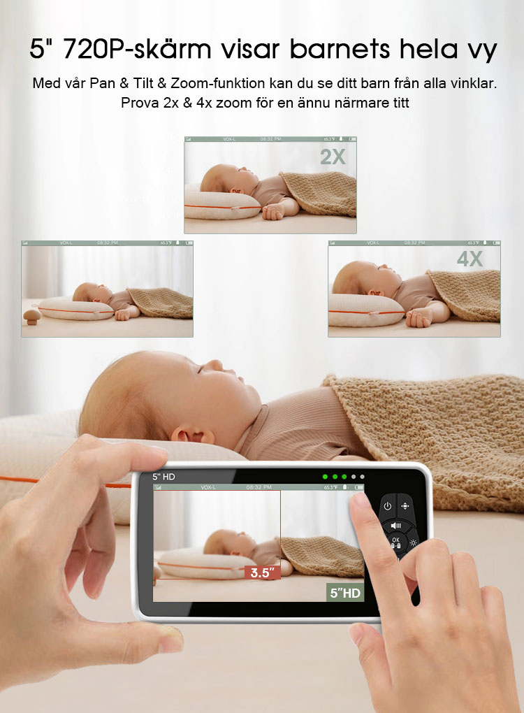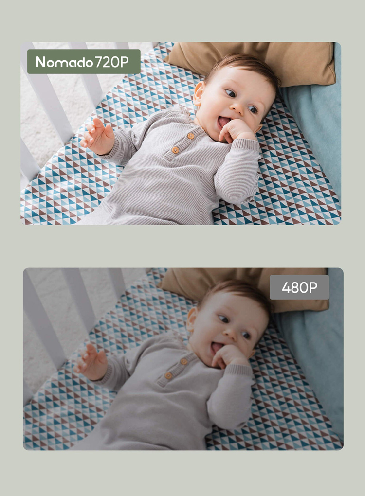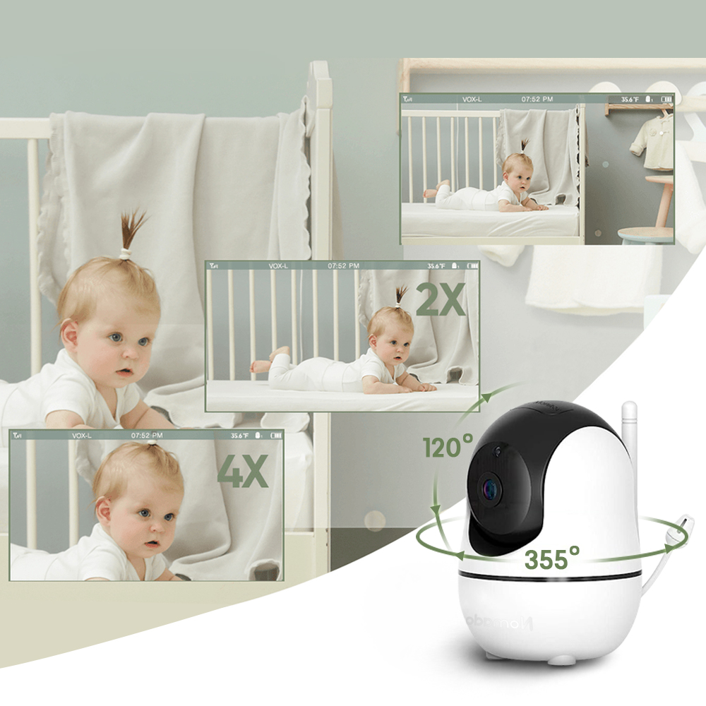 Det automatiska mörkerseendet ger tydliga svartvita bilder även i beckmörker, utan några röda lampor som stör ditt barn. Batteriet på 4000 mAh ger 25 timmars övervakning i VOX-läget, som sparar batteri genom att stoppa överföringen i tysta rum och varna dig först vid det första ljudet.