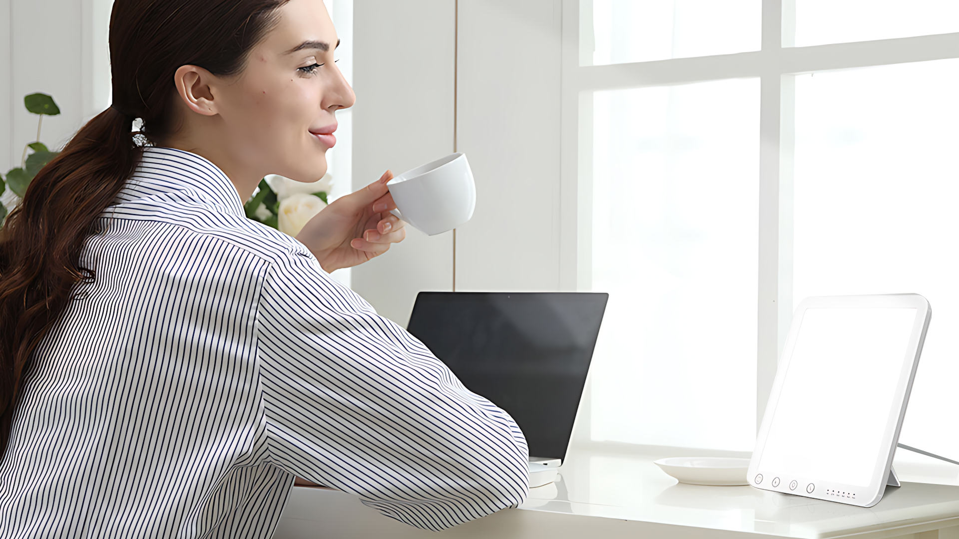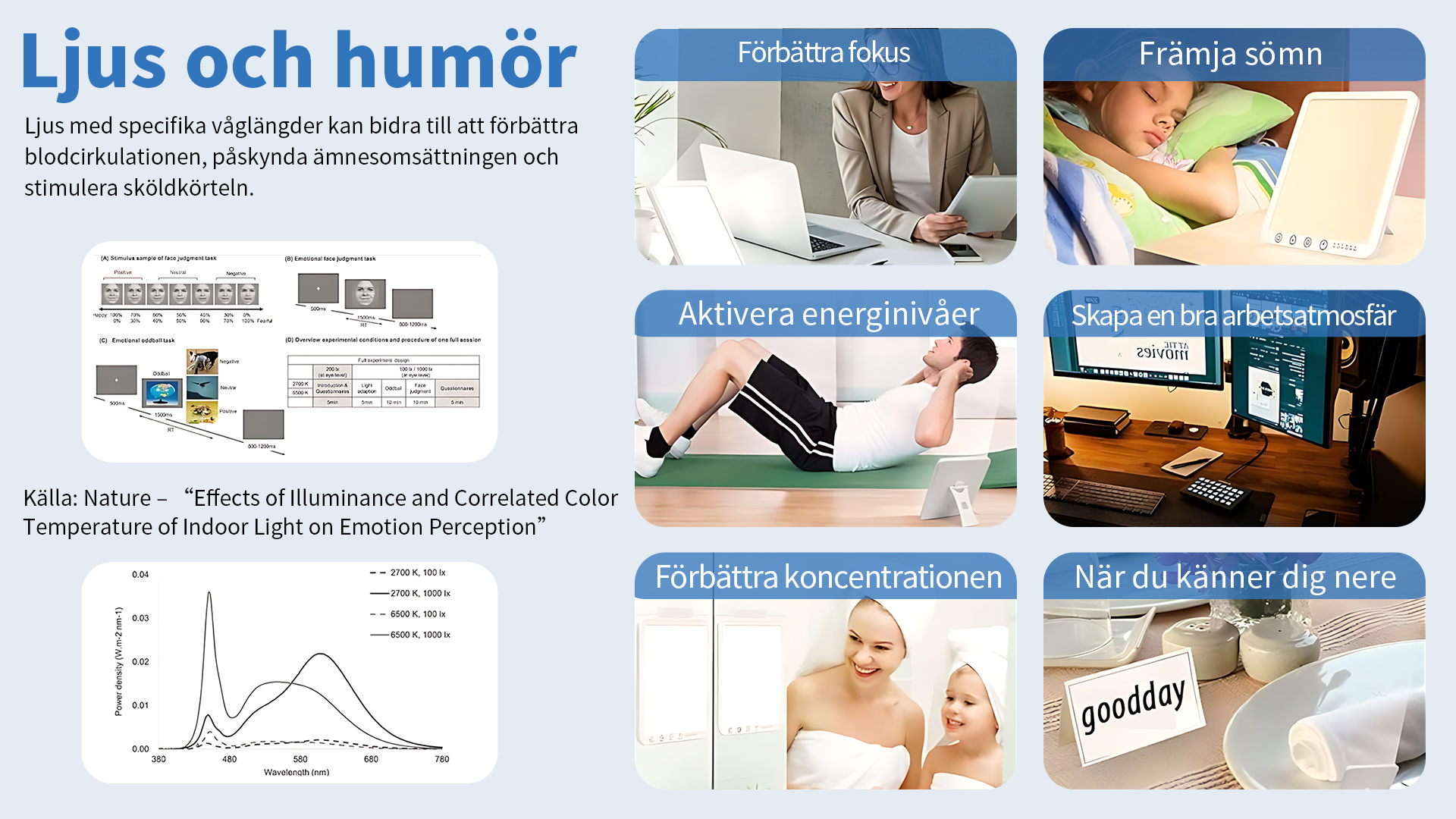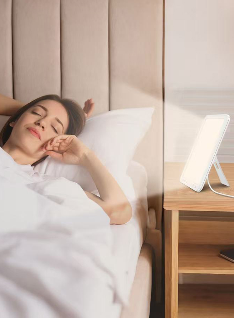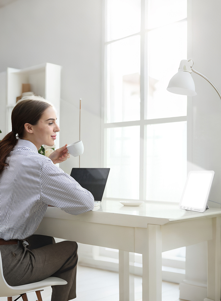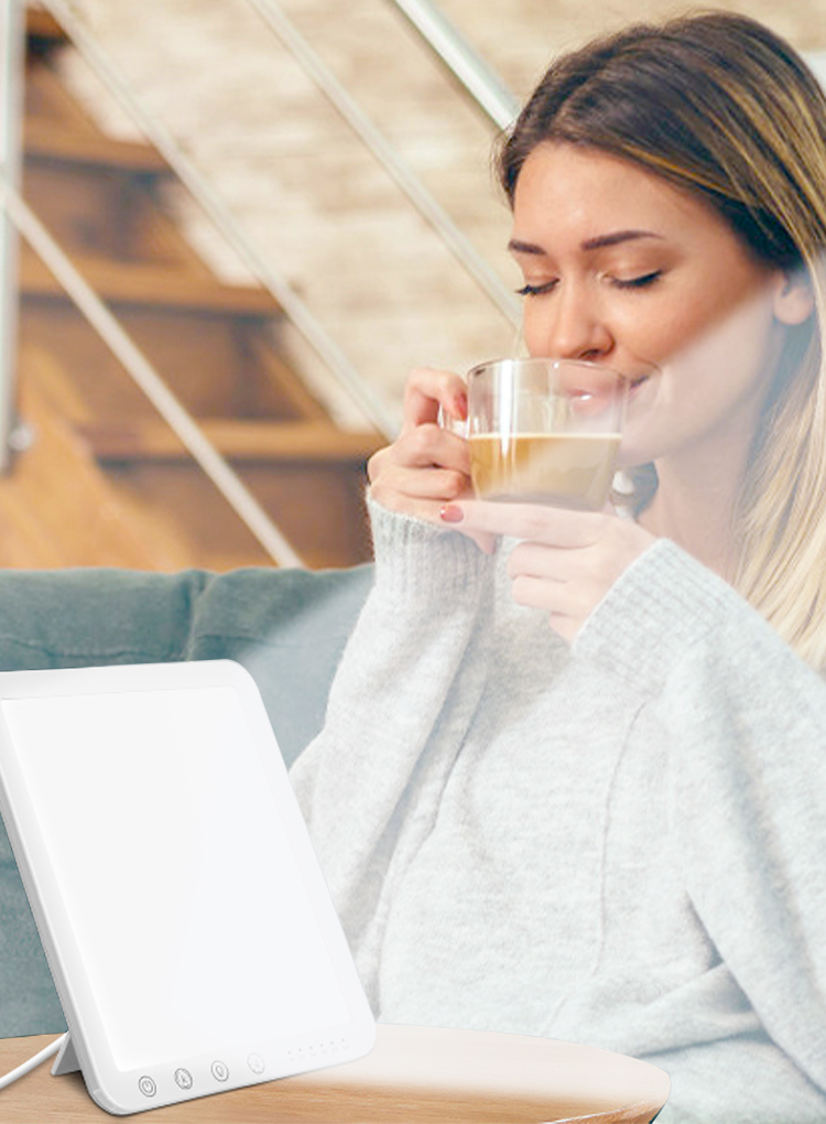 Vår ljusterapilampa erbjuder 5 ljusstyrkenivåer (20–100 %) för maximal komfort och anpassning utan att anstränga ögonen. Lampan är utrustad med ett luftkylt chip som håller temperaturen under 36 °C under användning. Det förlänger lampans livslängd och ökar säkerheten vid användning.