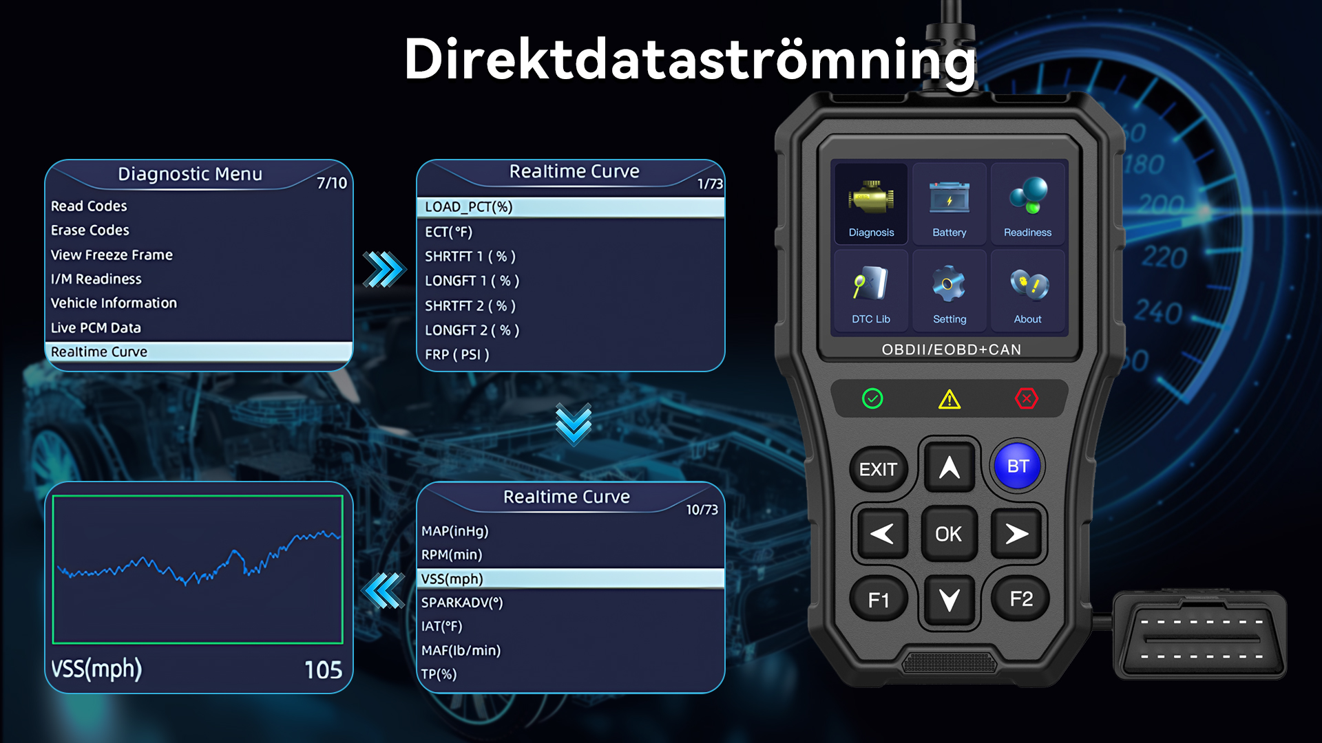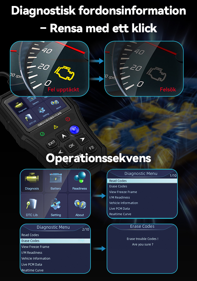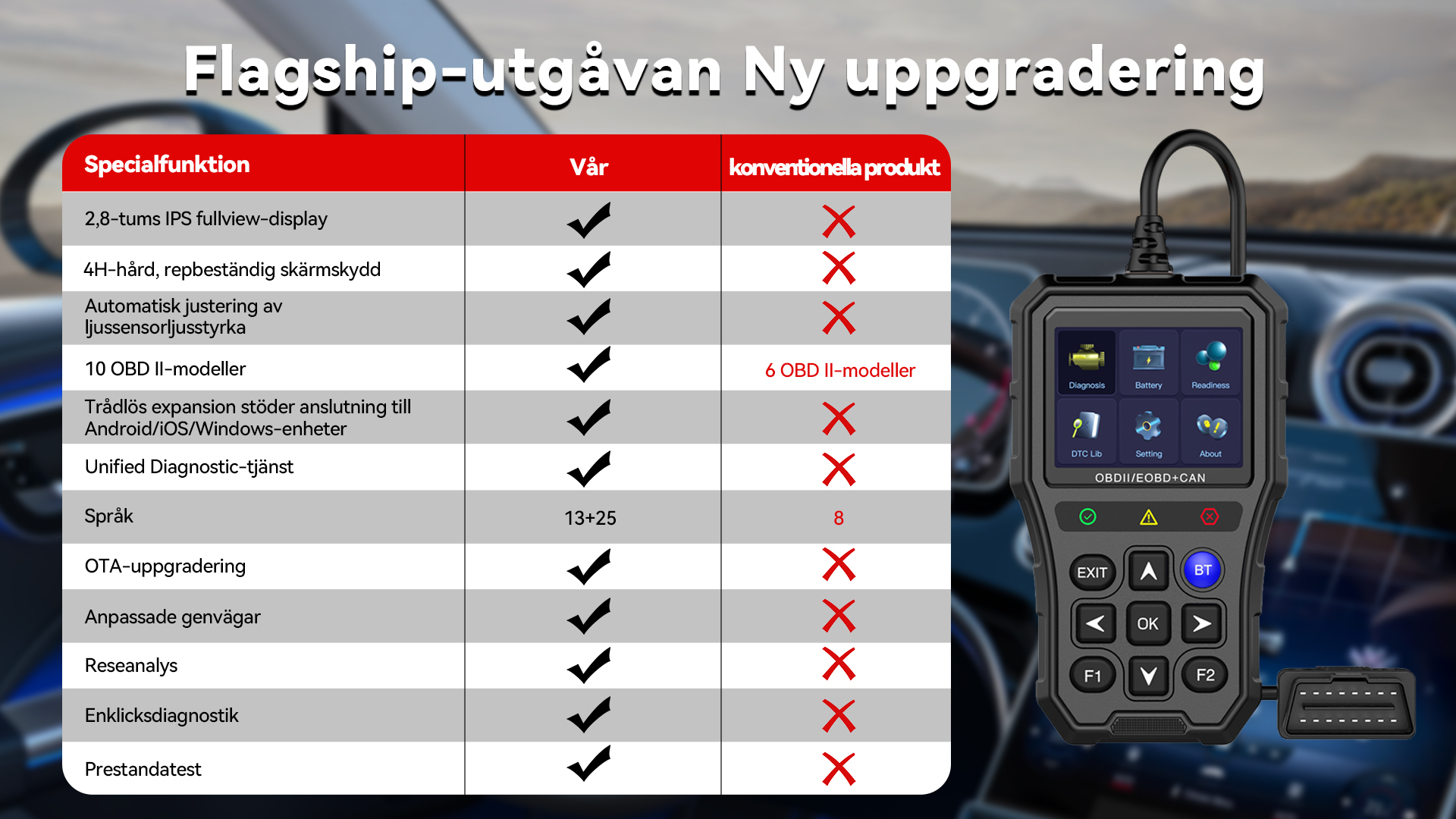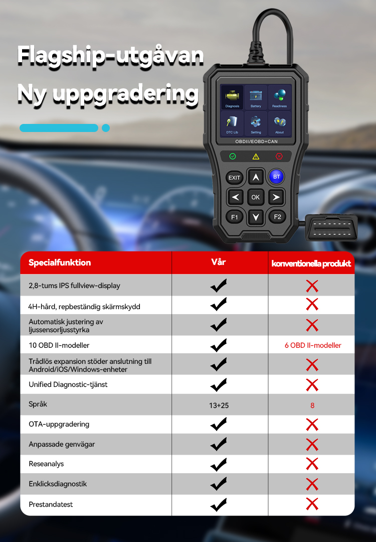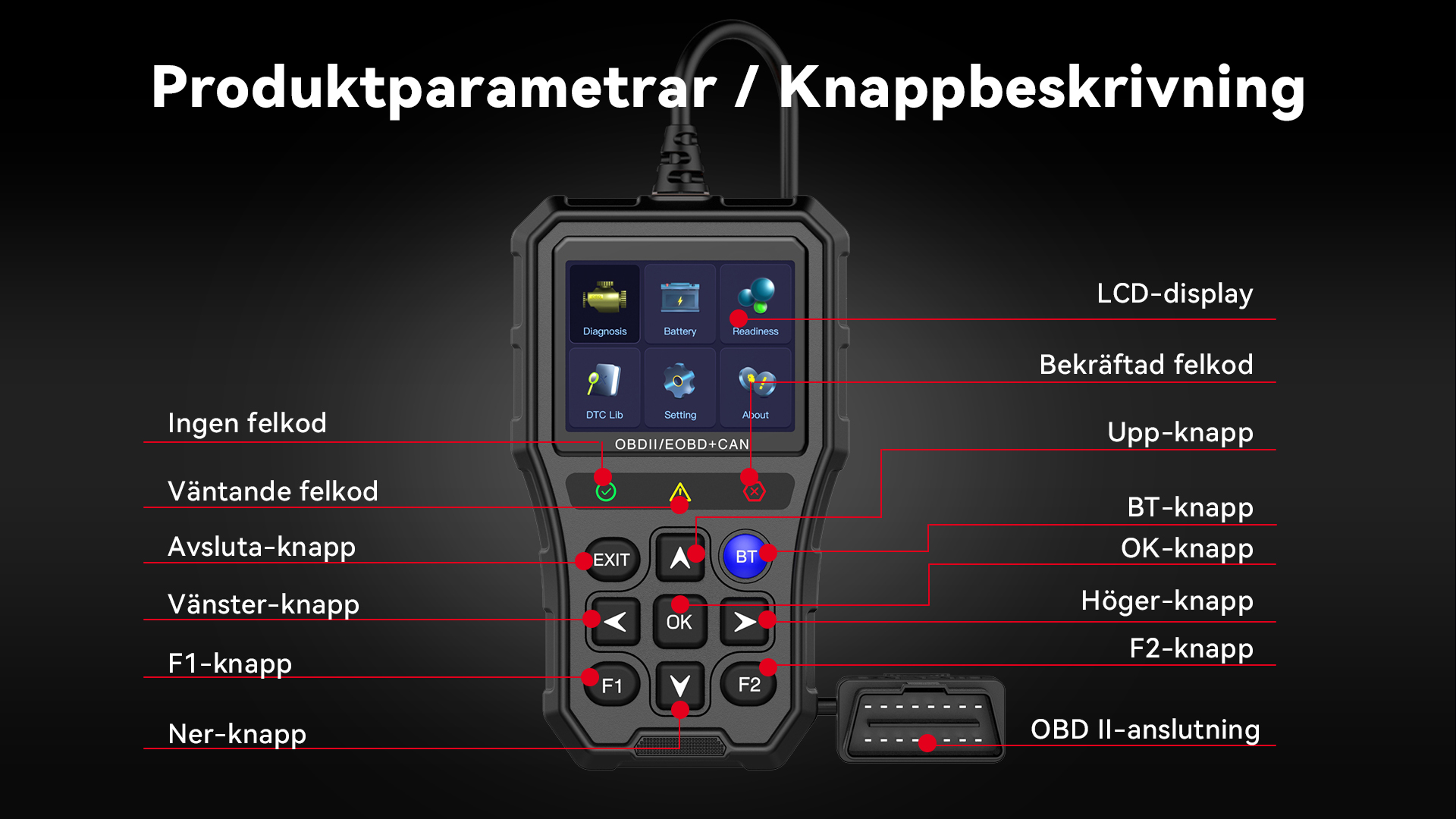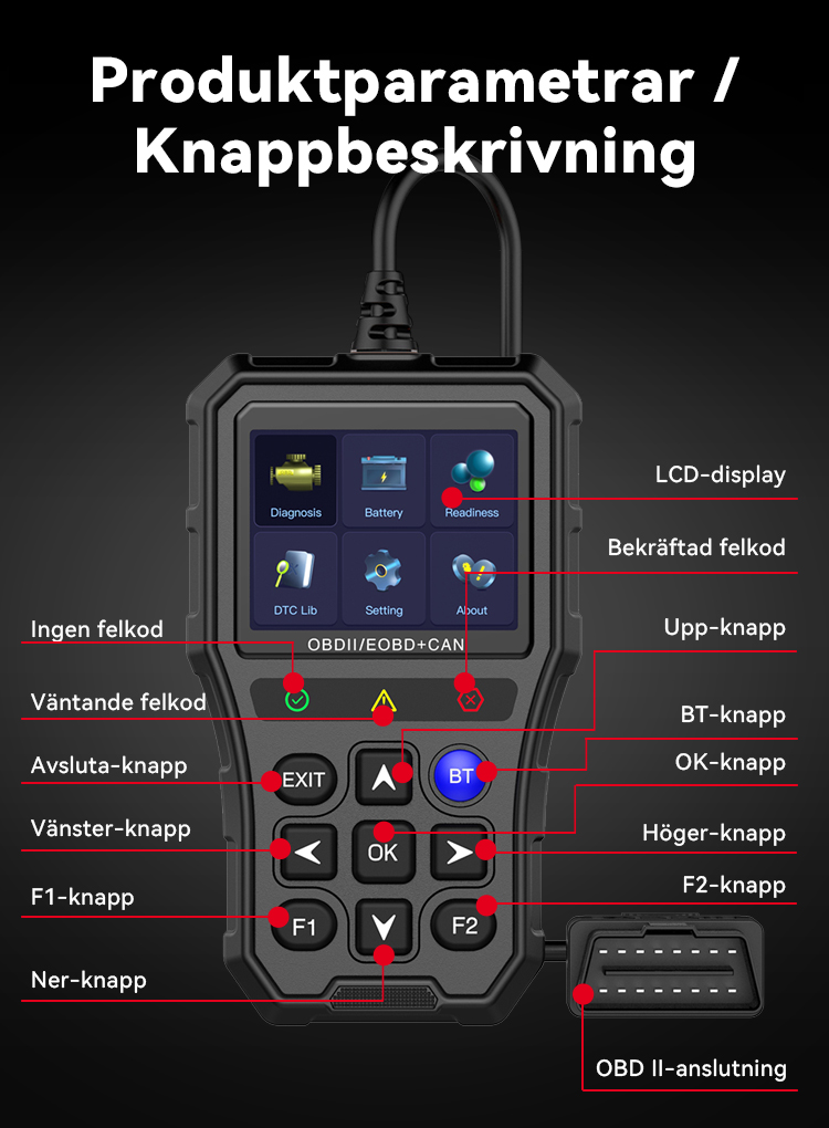 TeniGlow™ OBD2/EOBD-Felkodsläsare